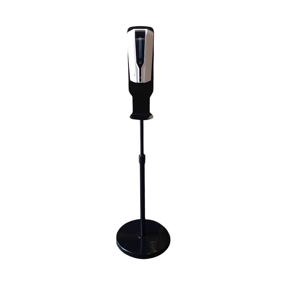 Stand mounted hand sanitizer dispenser with mains adapter & Battery point (Batteries not Included).